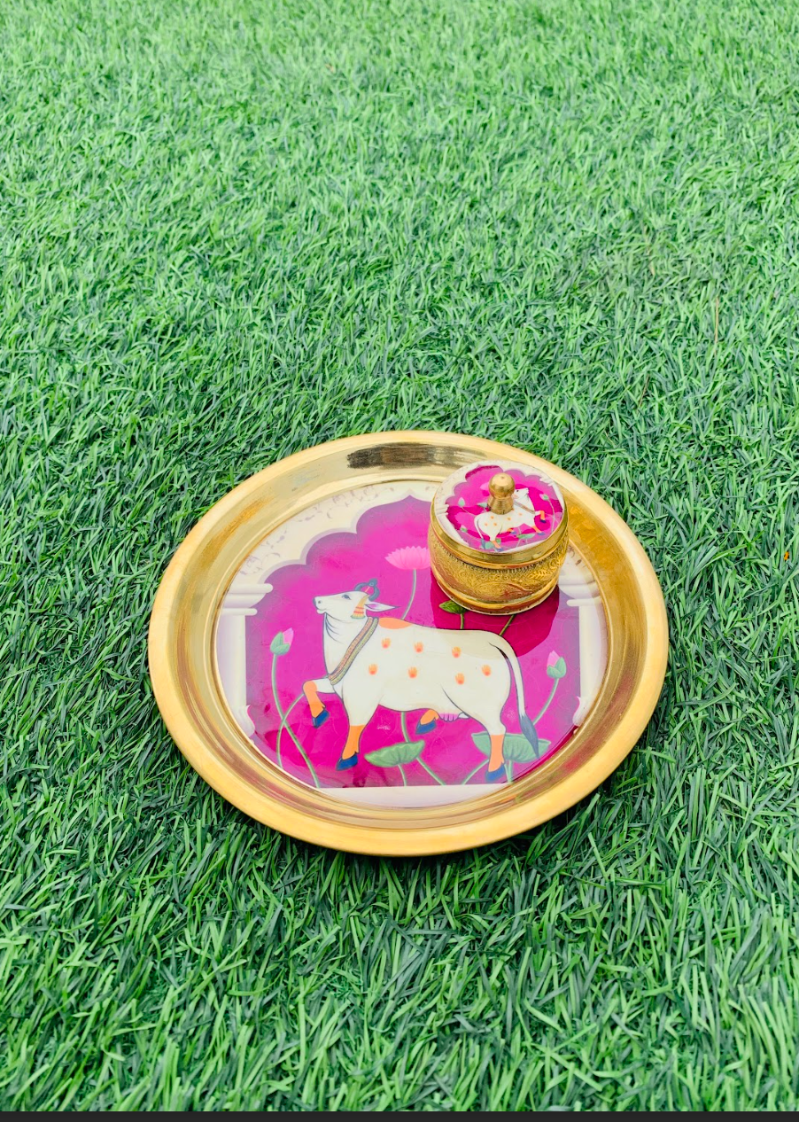 Celebrate traditions with our Auspicious Brass Grace Hamper — a thoughtfully curated gift for poojas, festive occasions, and return gifting. Featuring a brass-coated steel plate with a matching kumkum box, this hamper adds a touch of elegance and devotion to every ritual.