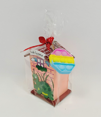 Make gifting both fun and meaningful with our Fun Savings Hamper. Featuring a wooden piggy bank to inspire saving habits and a colorful popit keychain for endless play, this hamper is beautifully wrapped and perfect for kids’ birthdays, Navaratri, and festive return gifting.