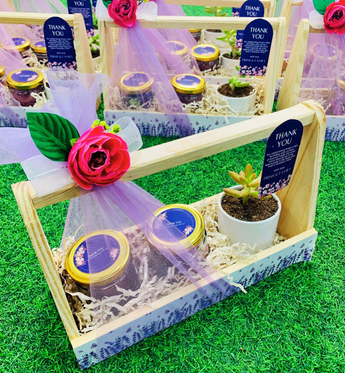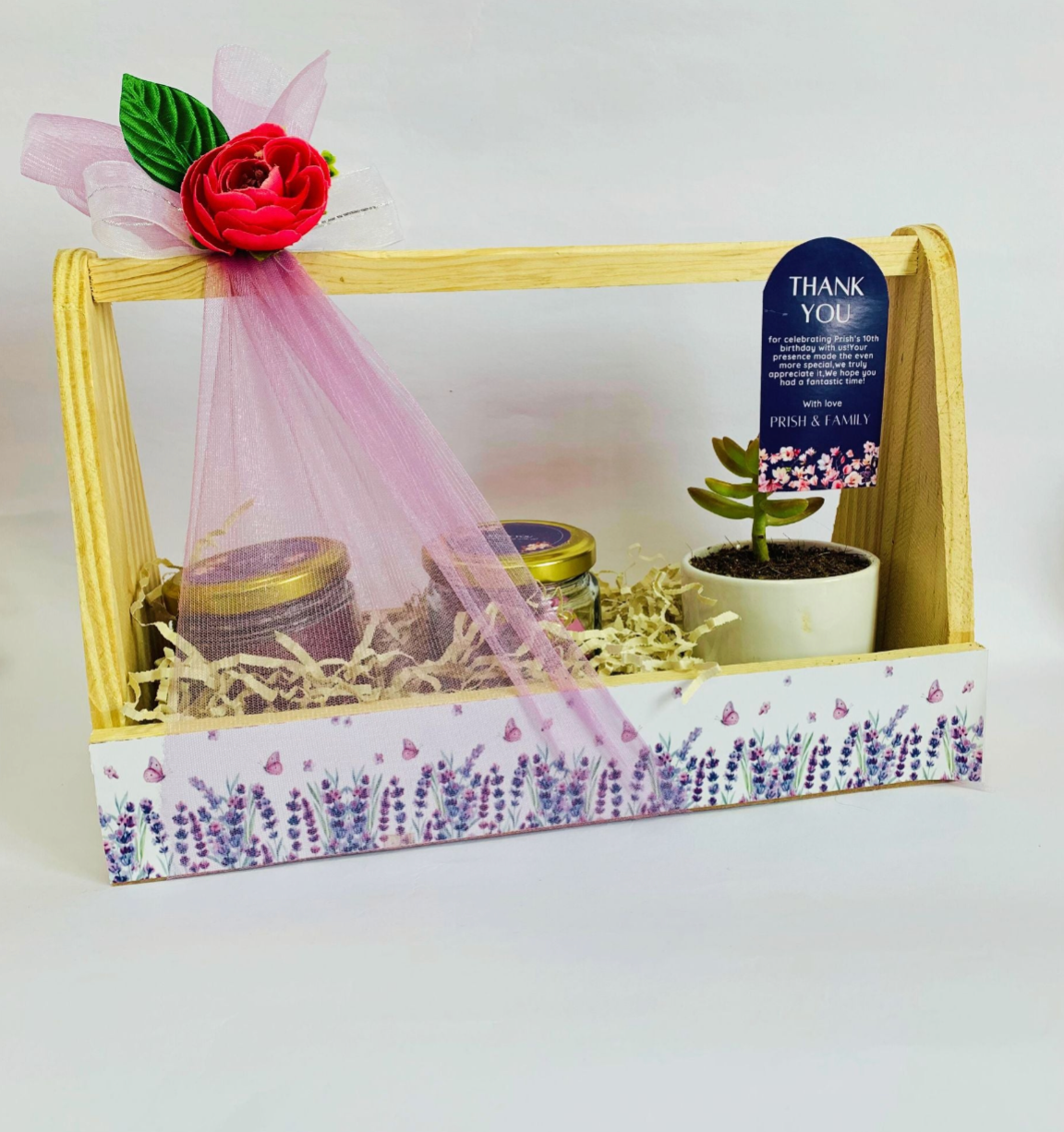 Add warmth, sweetness, and a touch of nature to your celebrations with our Candle & Green Living Gift Set — a thoughtfully curated blend of décor, indulgence, and eco-friendly charm. Featuring a soothing scented candle, a candy-filled jar, and a charming planter, all beautifully arranged on a wooden tray, this hamper is perfect for festive gifting, housewarmings, corporate presents, and special occasions. A tasteful keepsake that brings joy long after it’s gifted.