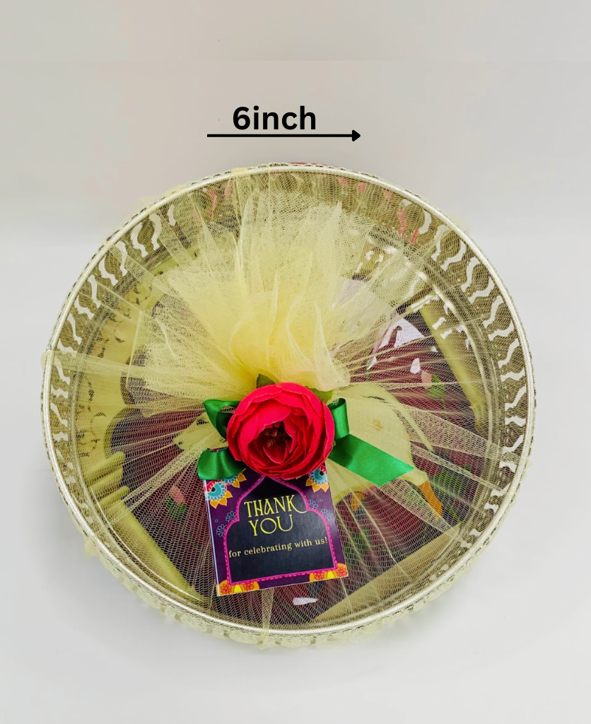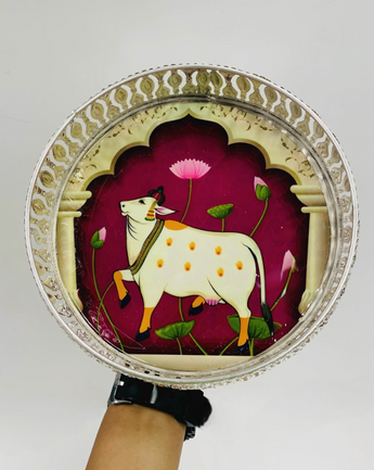 1)Pichwai Tray (6 inches) – A premium-quality tray featuring traditional Pichwai artwork, perfect for décor or serving.
