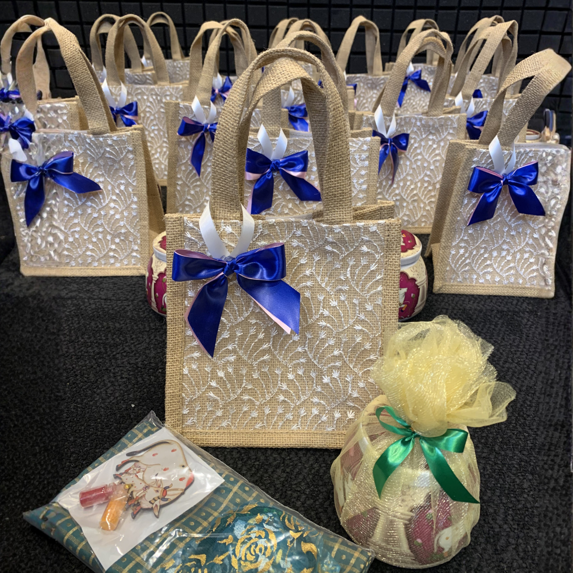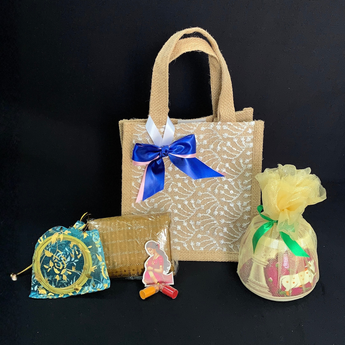 Add a touch of cultural elegance to your celebrations with our Pichwai Jar Jute Hamper — a graceful blend of heritage artistry and festive charm. Thoughtfully curated with traditional essentials and beautifully packed in a classic jute bag, this hamper is perfect for weddings, poojas, festive gatherings, and return gifting. Rich in symbolism and presentation, it’s a keepsake your guests will truly cherish.
