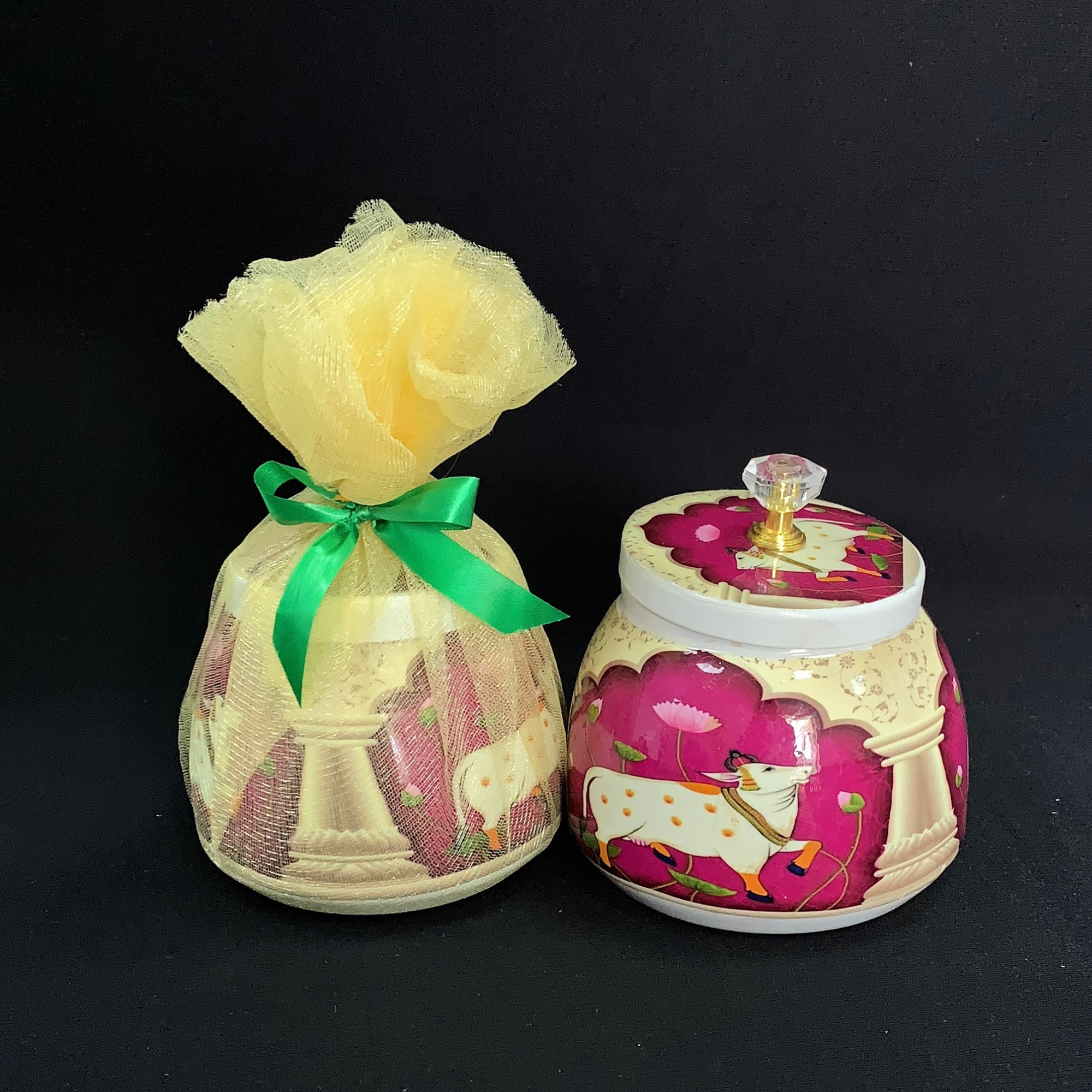 Pichwai Jar(4inch) – A beautifully designed jar inspired by traditional Pichwai art, adding cultural richness and devotional charm