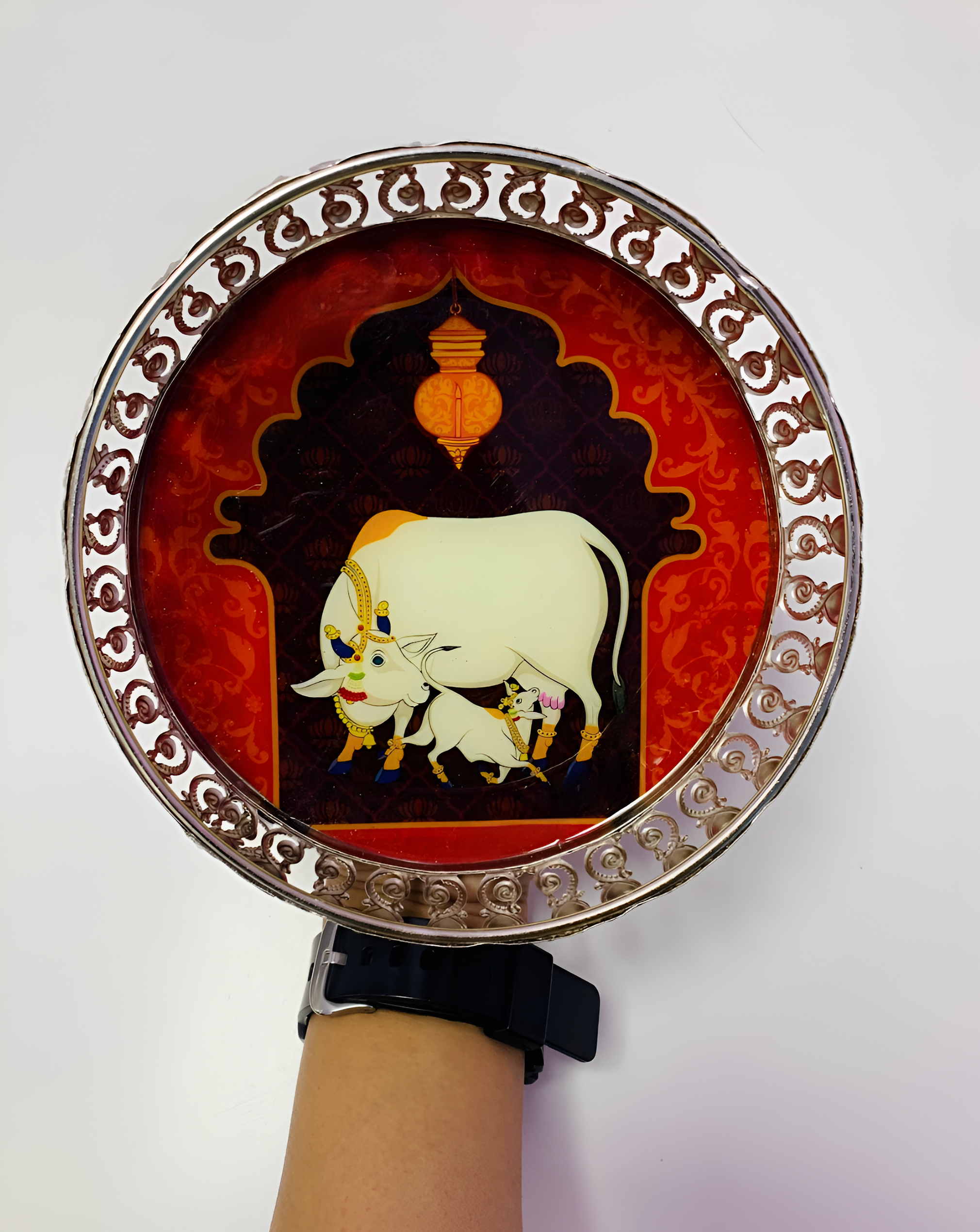 1)Pichwai Tray (6 inches) – A premium-quality tray featuring traditional Pichwai artwork, perfect for décor or serving.